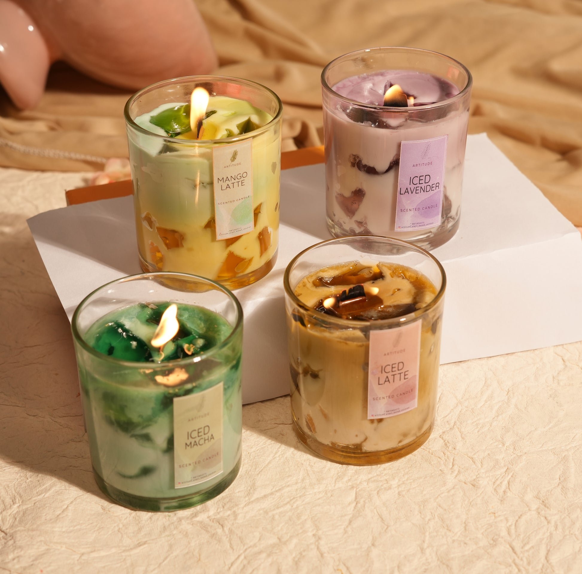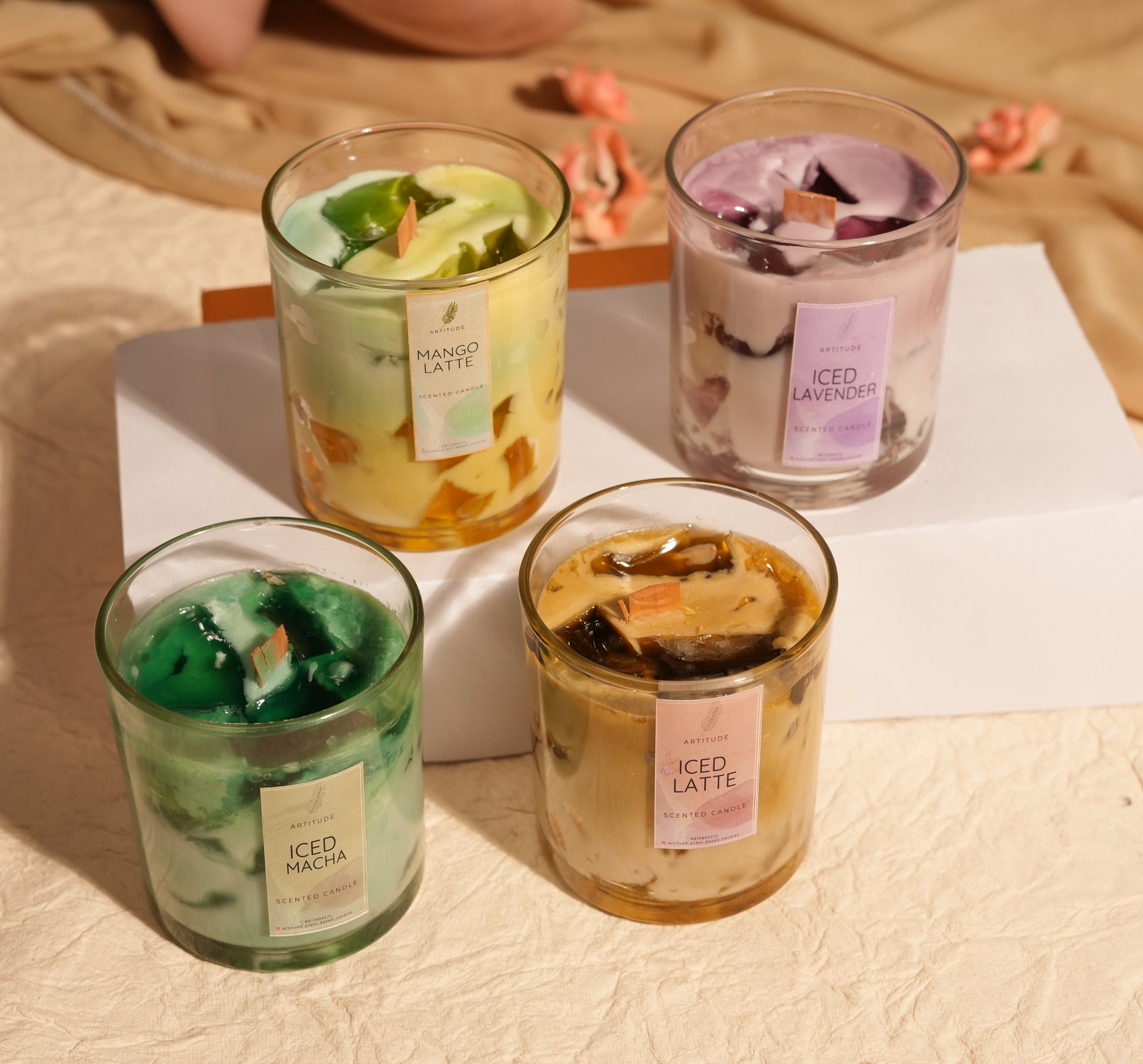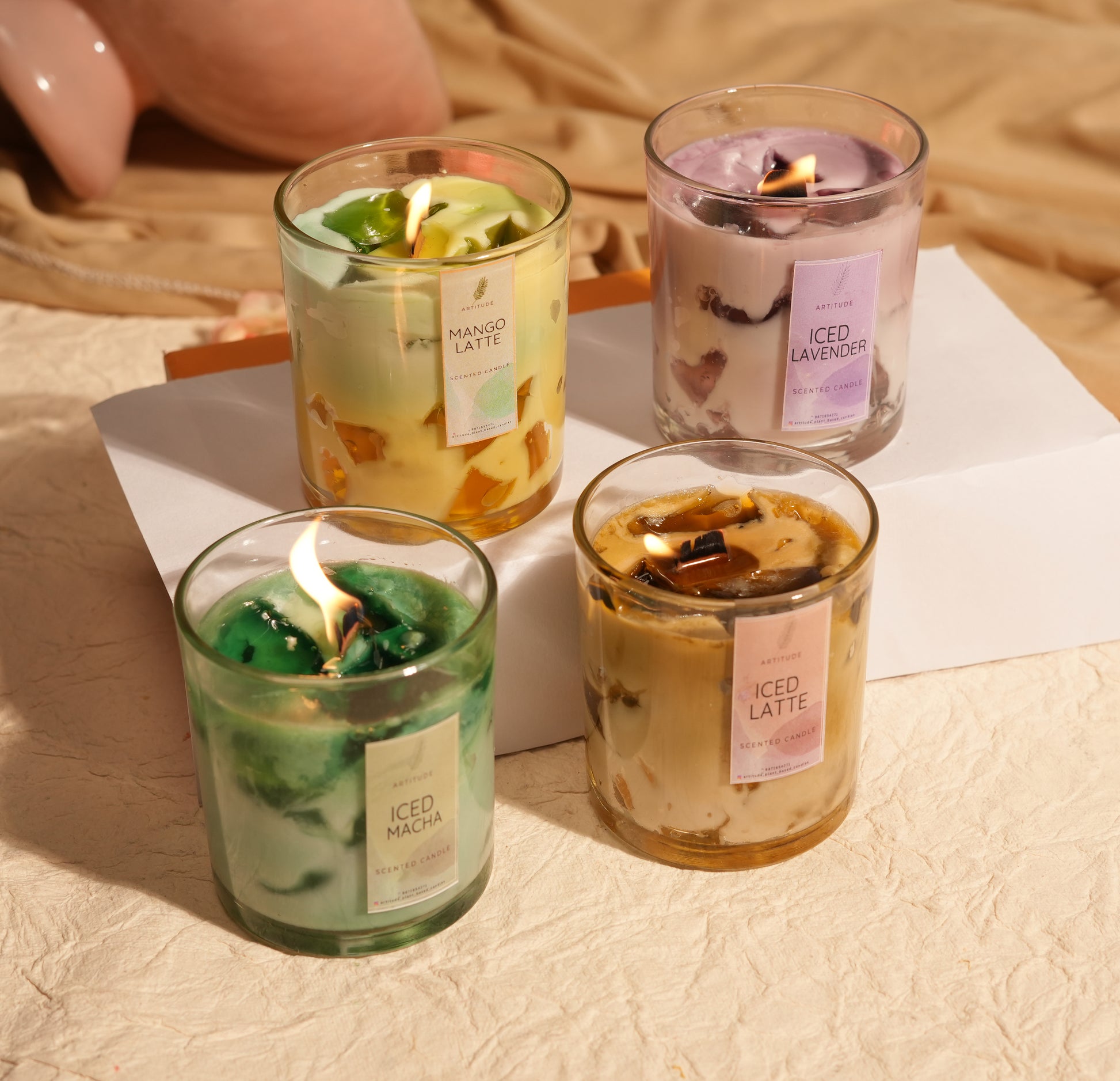 ICE LATTE: Indulge in the soothing aroma of your favorite coffee shop with our Ice Latte Candle, expertly crafted with a blend of premium soy wax and gel wax for a clean, long-lasting burn. Infused with alcohol-free essential oils in a rich coffee fragrance, this candle is a must-have for coffee lovers and anyone who enjoys cozy, aromatic experiences.