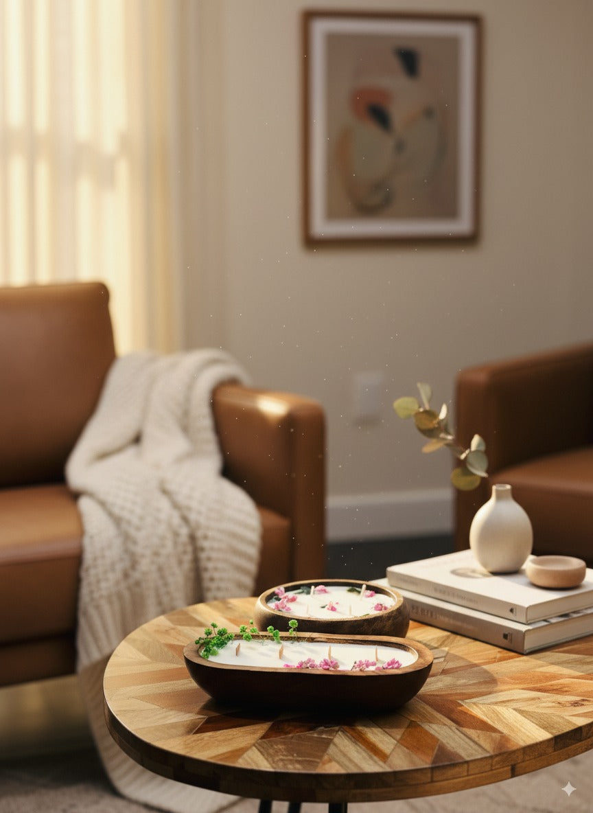 Elevate your space with Whispers of Vanilla – a signature creation from Artitude, where fragrance meets artistry. Hand-poured into beautifully crafted wooden bowls, this elegant botanical candle features a premium blend of natural soy wax and alcohol-free essential oils, offering a clean, toxin-free burn that's gentle on your senses and the environment.